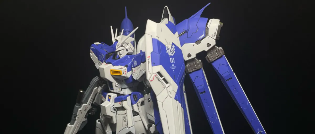製作方面,主要係將配色改為較接近紫藍+白的經典配色。 另外背包連接飛翔砲的部分因為麻煩的分模線特別把原本的細節鏟走,再好好打磨後然後貼上3D補品。效果還可以。